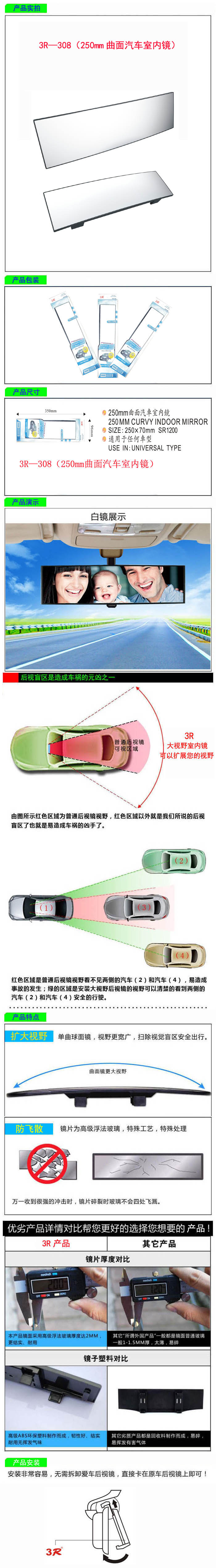 • 型號:   3R—308(250mm曲面汽車室內鏡)