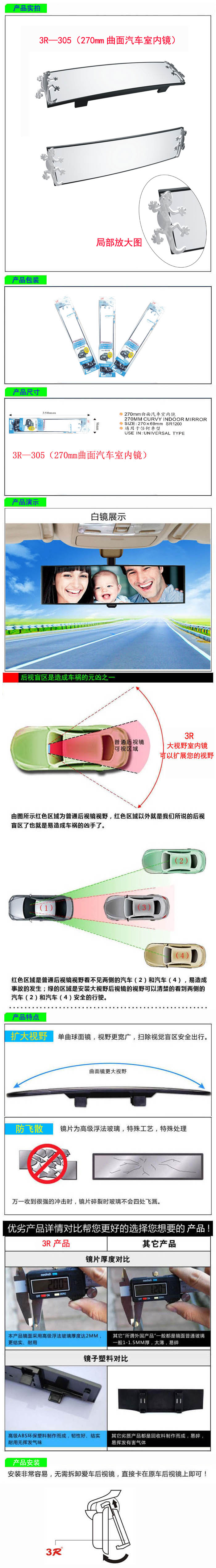 • 型號:   3R—305(270mm曲面汽車室內鏡)