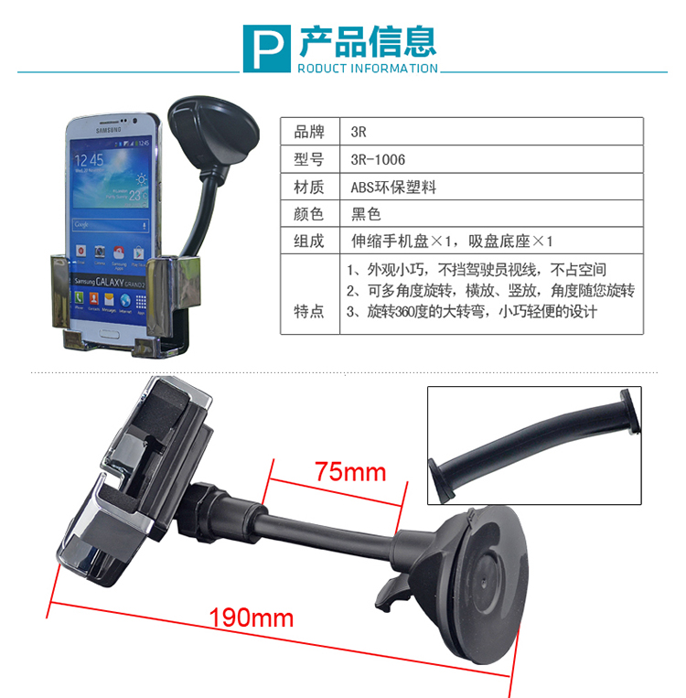 • 型號:   3R-1006車用手機架