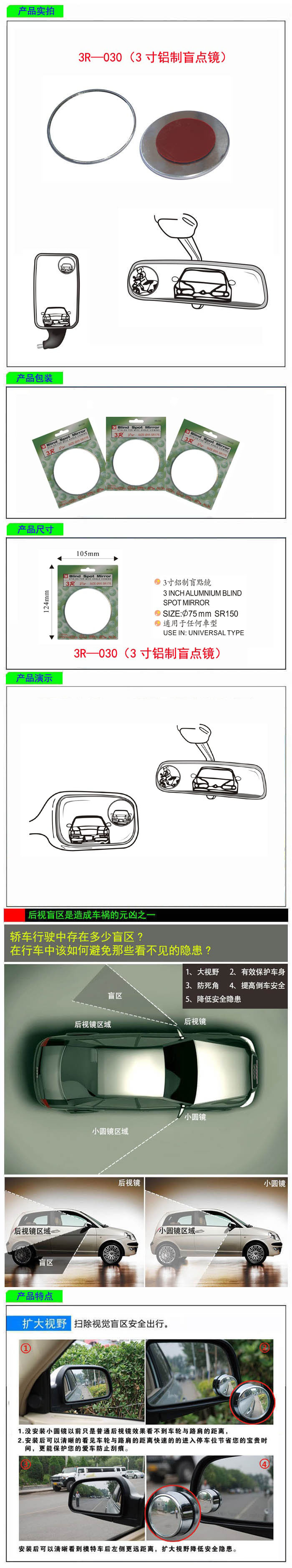 • 型號:   3R—030(3寸鋁制盲點鏡)
