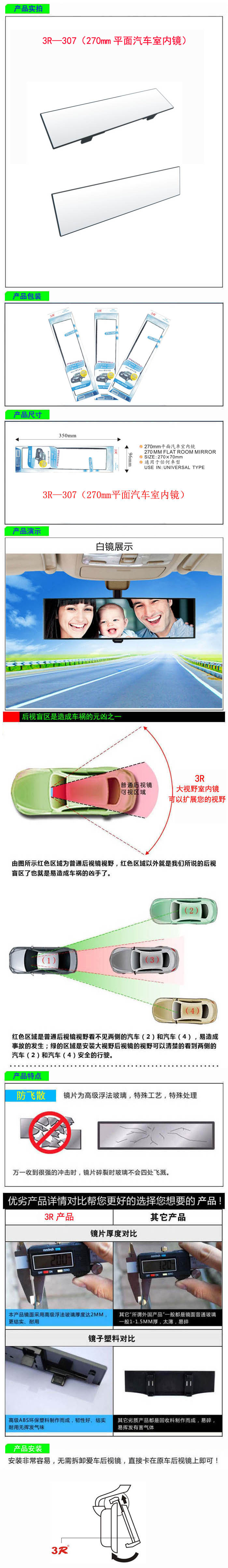 • 型號:   3R—307(270mm平面汽車室內鏡)