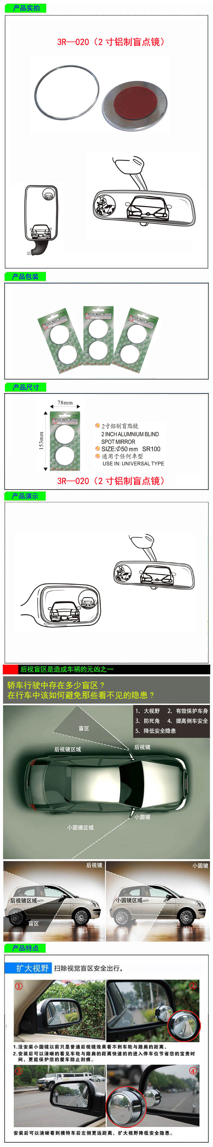 • 型號:   3R—020(2寸鋁制盲點鏡)