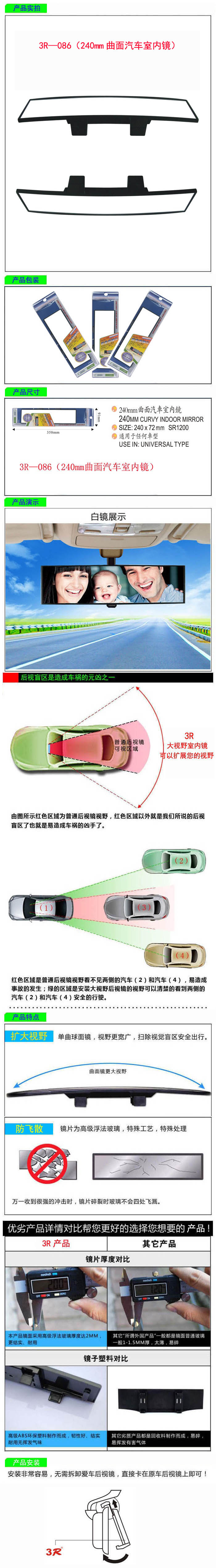 • 型號:   3R—086(240mm曲面汽車室內(nèi)鏡)