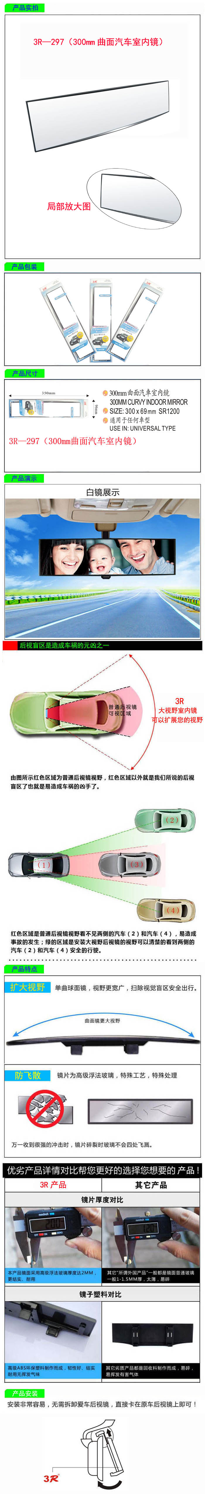 • 型號:   3R—297(300mm曲面汽車室內鏡)