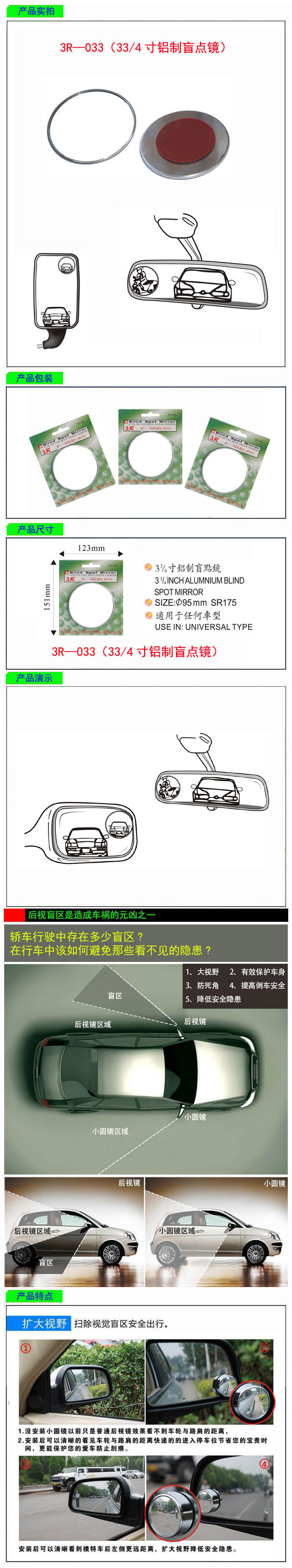 • 型號:   3R—033(33/4寸鋁制盲點(diǎn)鏡)