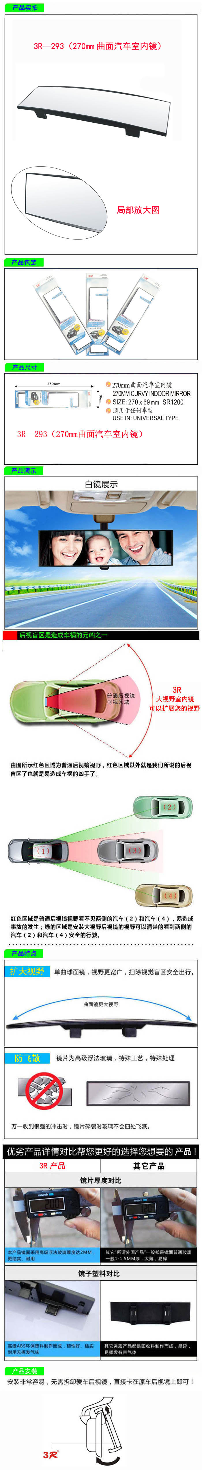 • 型號:   3R—293(270mm曲面汽車室內鏡)