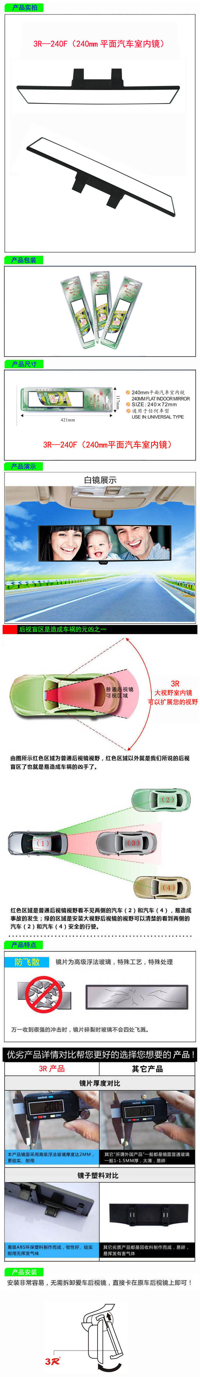 • 型號(hào):   3R—240F(240mm平面汽車室內(nèi)鏡)