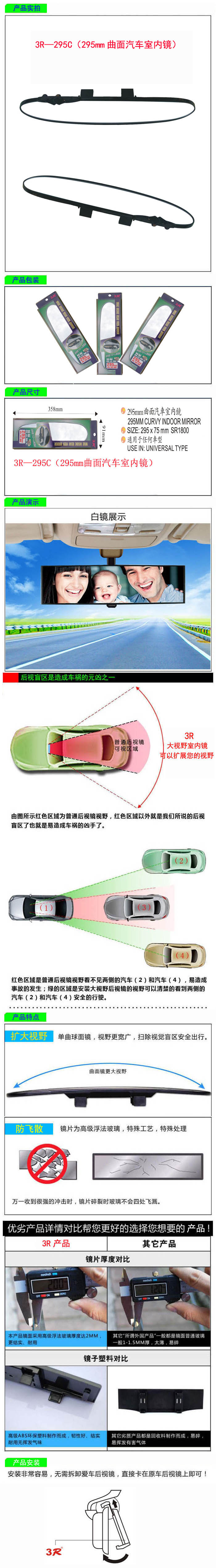 • 型號:   3R—295C(295mm曲面汽車室內(nèi)鏡)